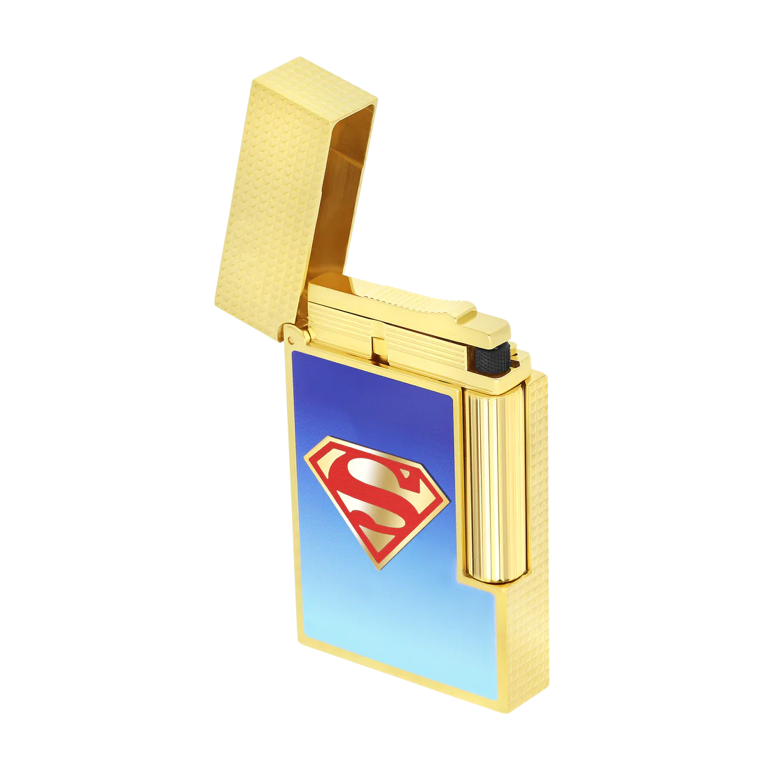 Celebrate Superman with S.T. Dupont’s Line 2 Cling lighter, featuring a blue lacquer gradient inspired by Metropolis skies and finished in gold. The iconic Superman “S” emblem adds heroic flair, while the signature “Cling” sound and double yellow flame deliver the brand’s unmistakable luxury.